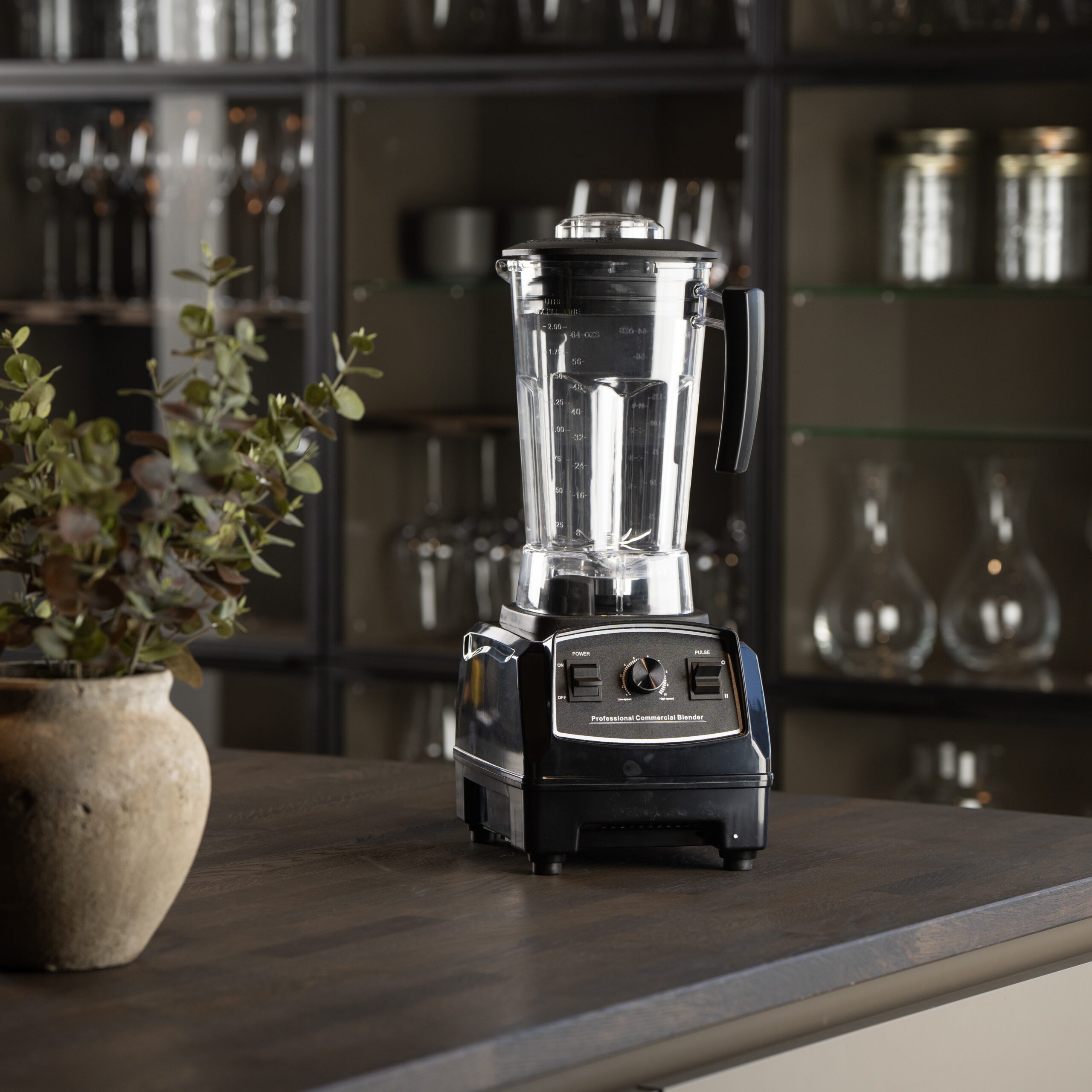 Blenderen har en kraftfuld 1.500W motor med 2 hestekræfter og en 2L BPA-fri Tritan-beholder, hvilket sikrer effektiv og sikker blending.