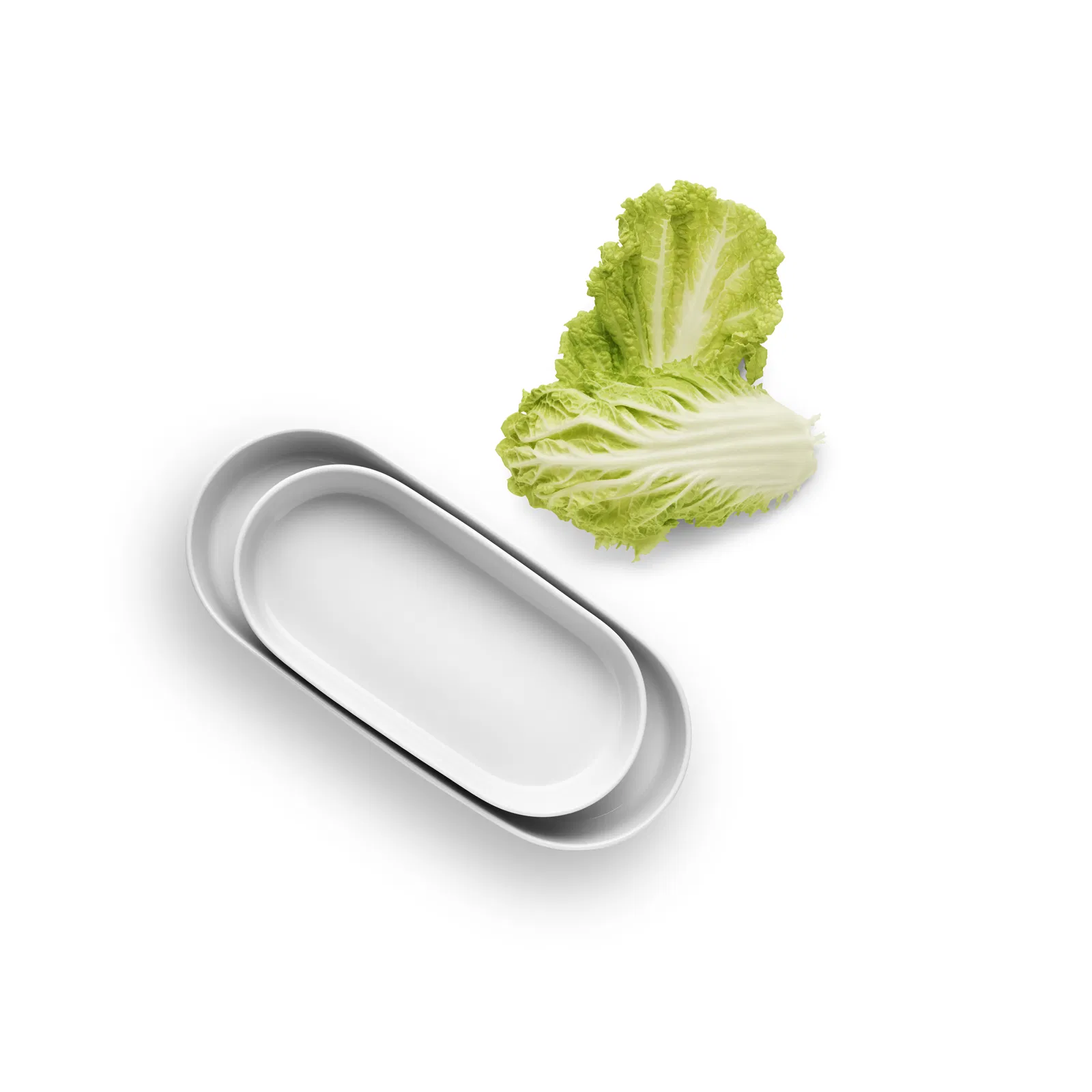 Det elegante sæt består af to fade – et på 20×10 cm og et på 25×11 cm – der fremhæver enhver anretning, uanset om det er små retter, tapas eller tilbehør.