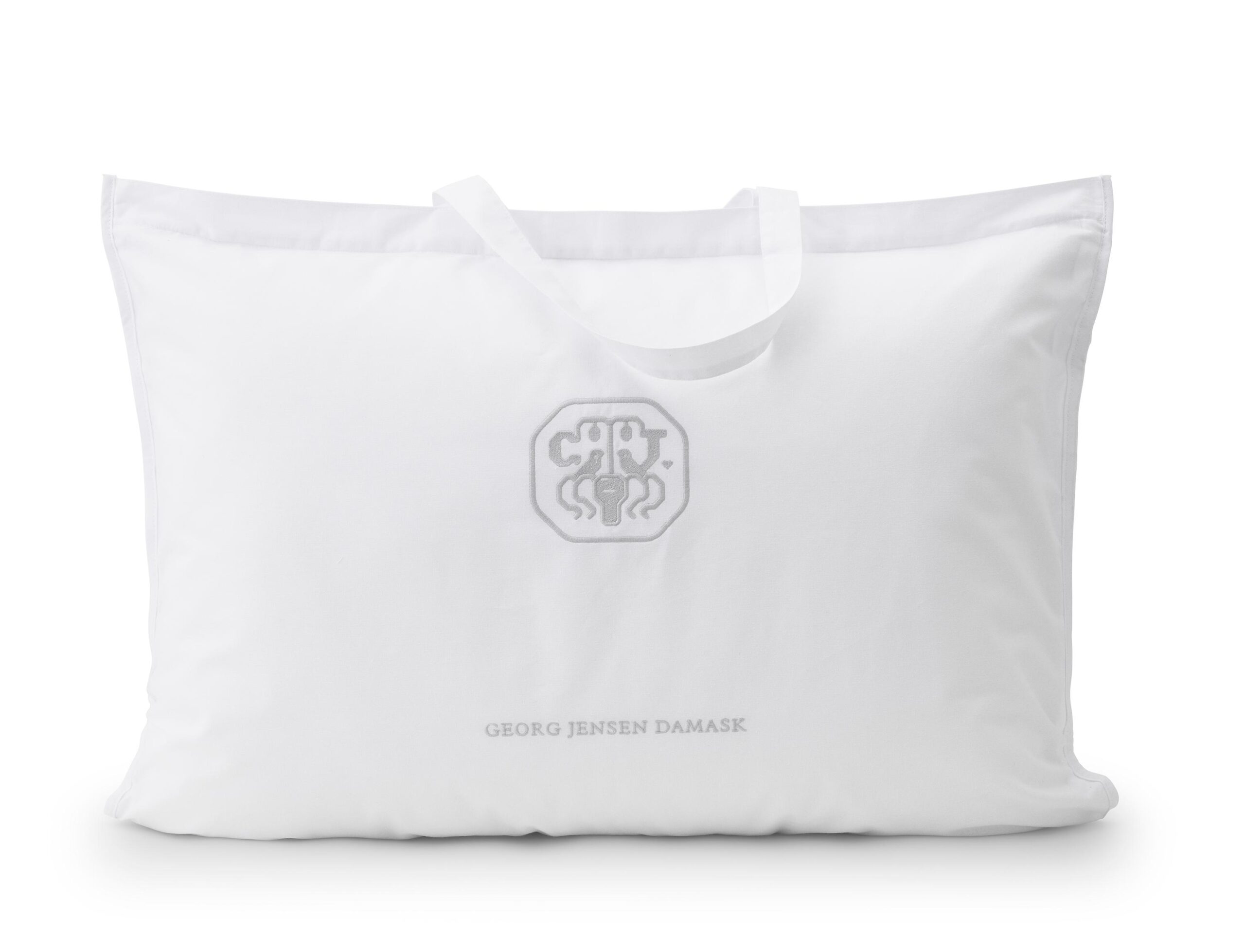 For at give optimal komfort og støtte har puderne tre separate kamre. Puden bærer Georg Jensen Damasks ikoniske logo som et diskret broderi – et symbol på kvalitet og omhyggelighed.