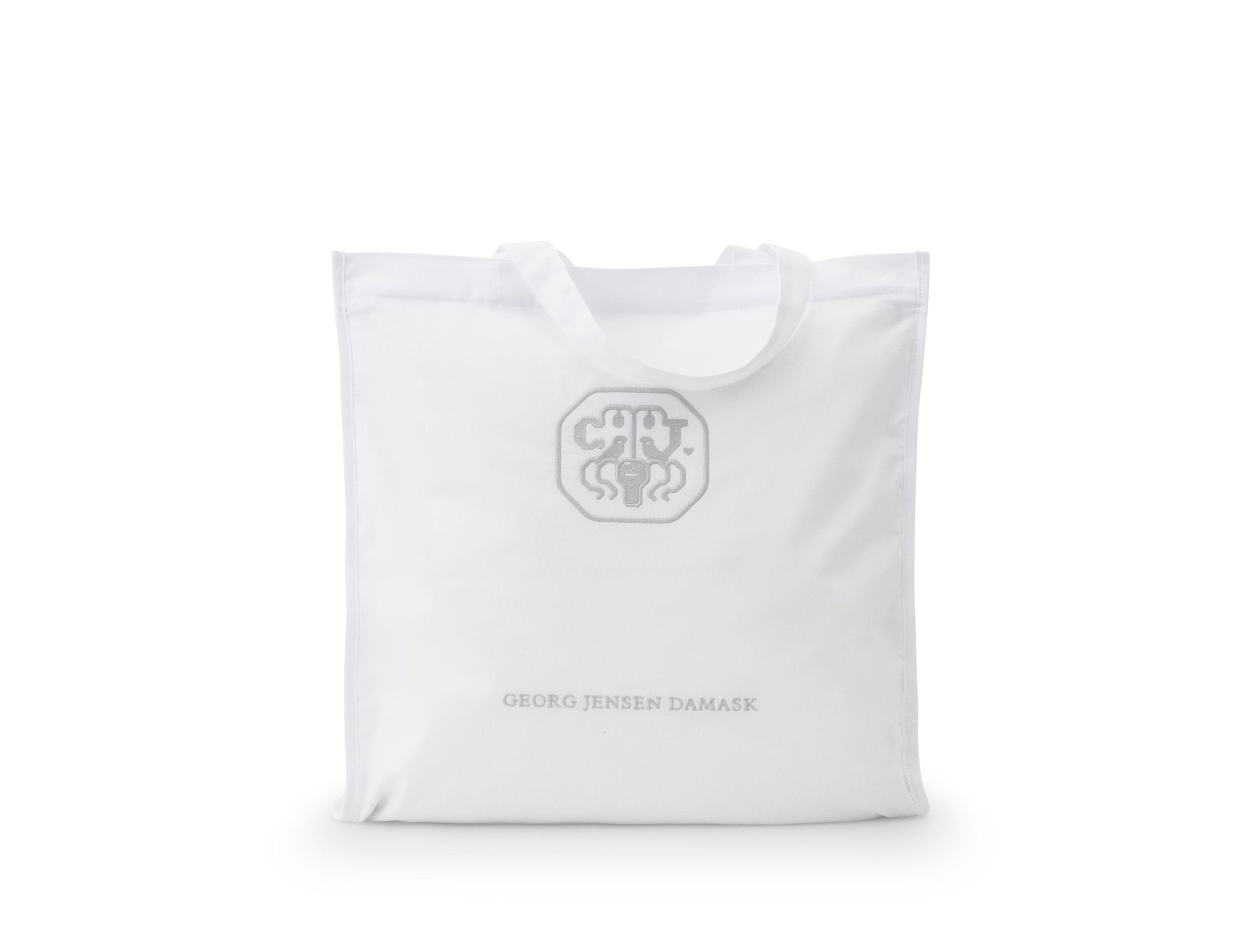 De opspundne, lange fibre griber ind i hinanden og sikrer en optimal ventilation. Fibrene giver dynen en god spændstighed, så den tilpasser sig og omslutter kroppen. Dynen bærer Georg Jensen Damasks ikoniske logo som et diskret broderi – et symbol på kvalitet og omhyggelighed.