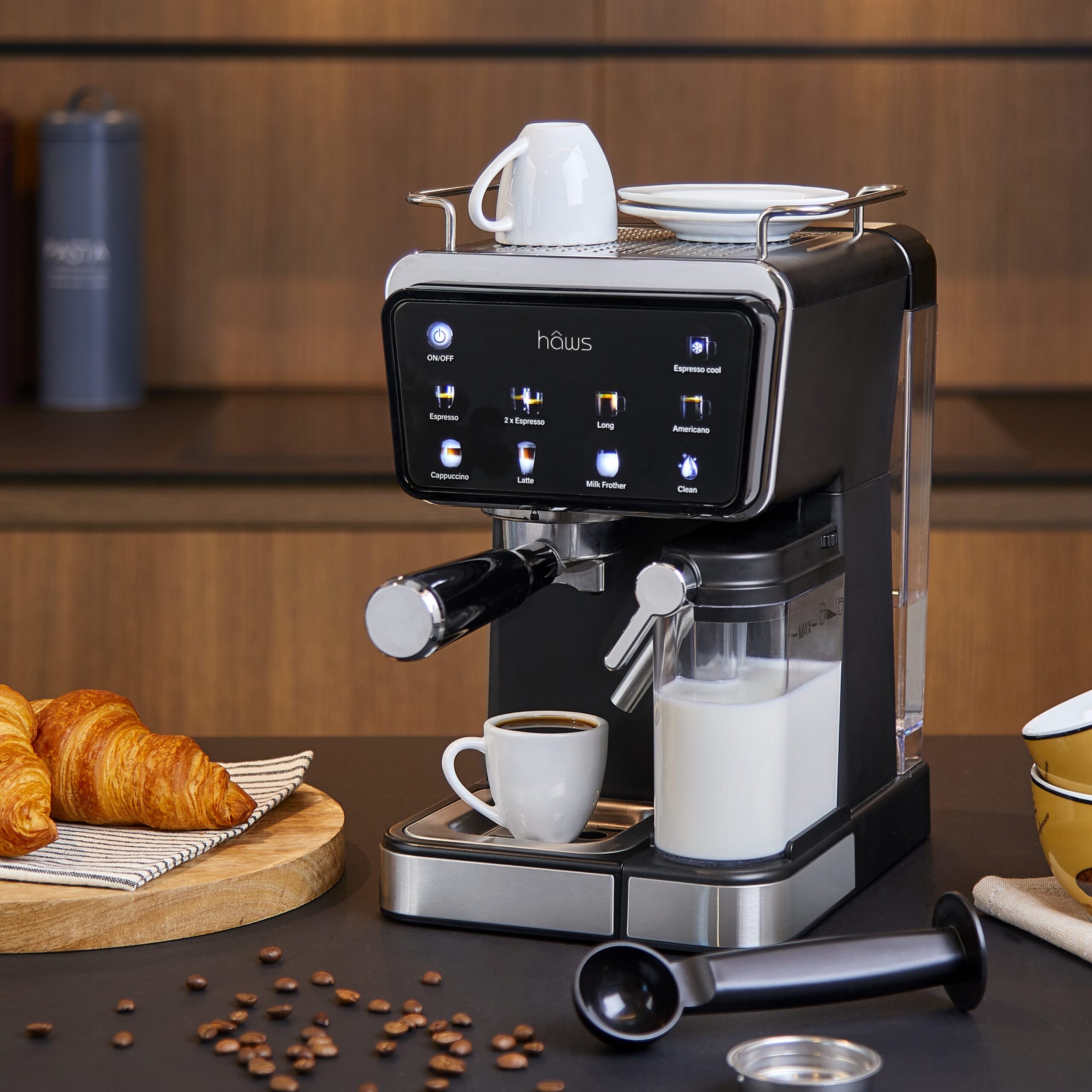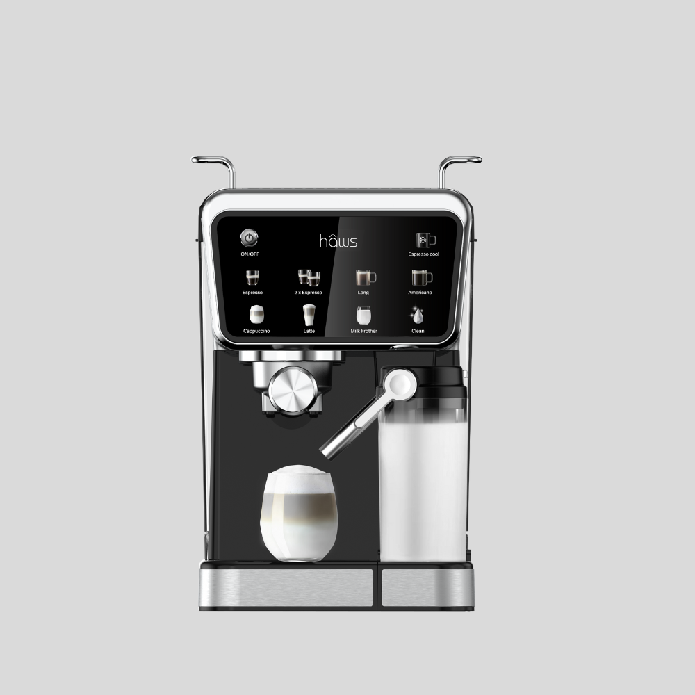 Oplev caféstemningen i dit eget køkken. Med Hâws Espressomaskine 7-i-1 får du professionel kaffeoplevelse på få sekunder – hurtigt, nemt og fleksibelt.