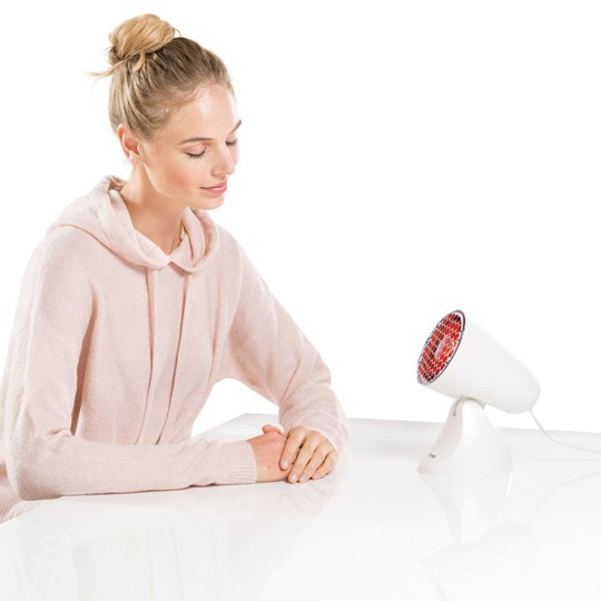Denne medicinsk godkendte infrarøde lampe giver dig beroligende varme og bruges mod bl.a. forkølelse og muskelspænding. Kan indstilles til den rette vinkel med 5 justerbare hældninger. Med beskyttelsesgitter.